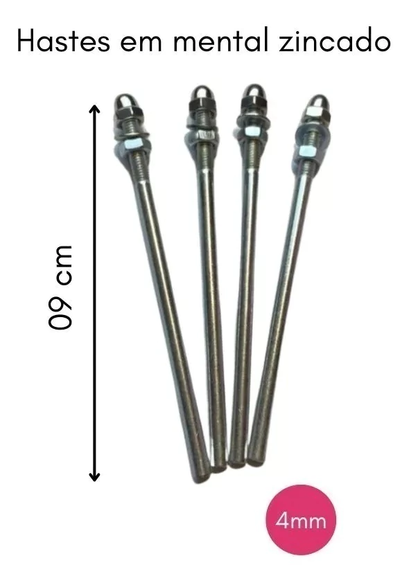 25 cm x 25 cm com 04 hastes de 9cm x 4mm